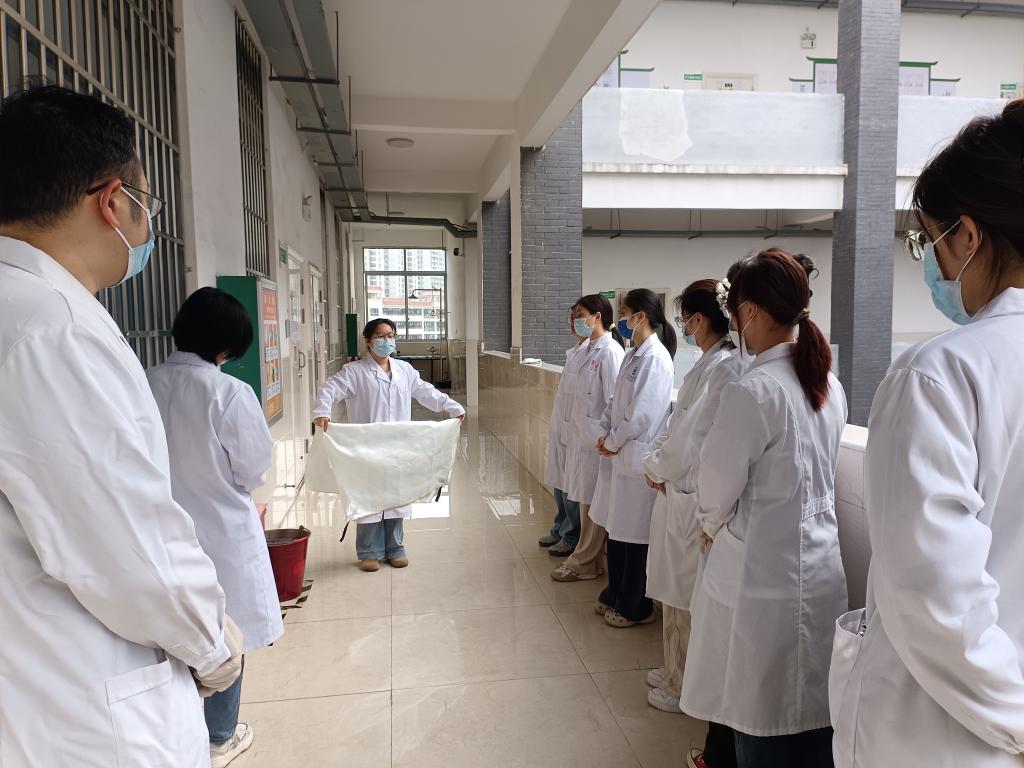 老师现场演示灭火毯使用